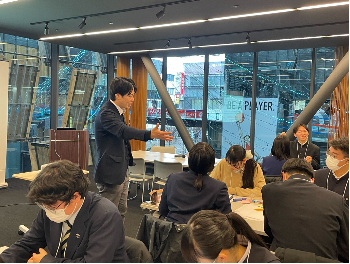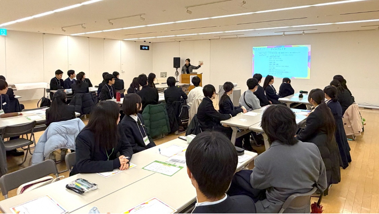 午後は、テーマ別に3つの体験型ワークショップが実施されました。いずれの会場でも、生徒たちは初対面のメンバーとチームを組み、データや情報をもとにアイデアを形にしていきました。