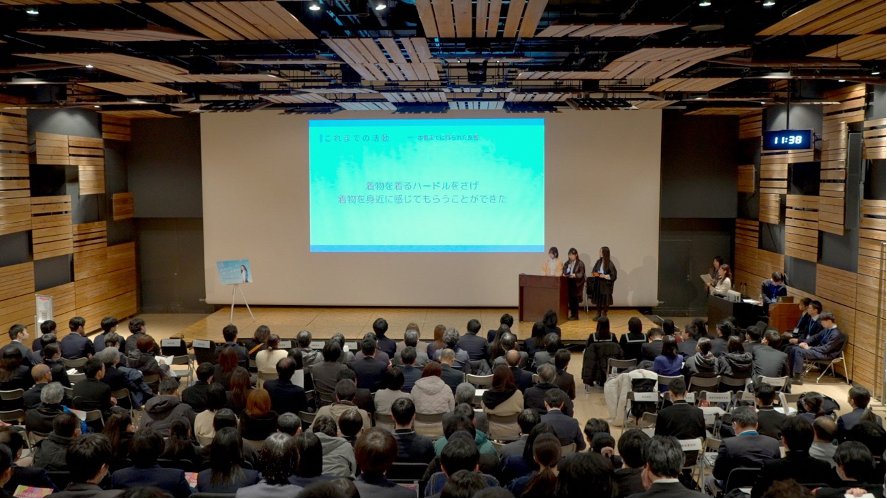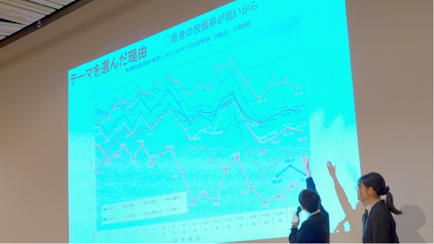 続く探究成果発表では、8校の生徒がステージに登壇し、それぞれの探究テーマについて発表を行いました。身近な地域課題や社会の疑問を出発点に、データや調査を重ねてきたプロセスが語られ、会場からはリアルタイムで応援や質問のコメントが寄せられました!