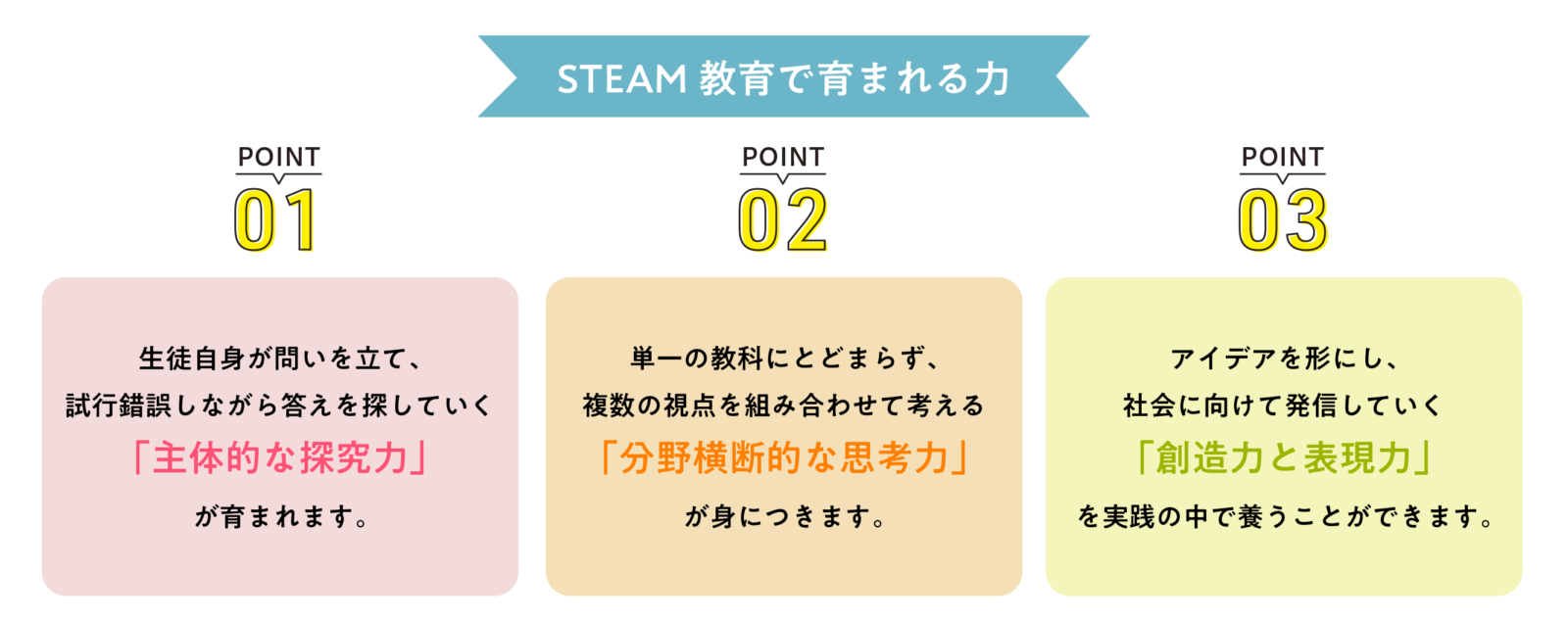 STEAM教育の核心は、「分野横断的な学びを通じて、変化する社会を自分の力で切り拓いていける人を育てること」にあります。